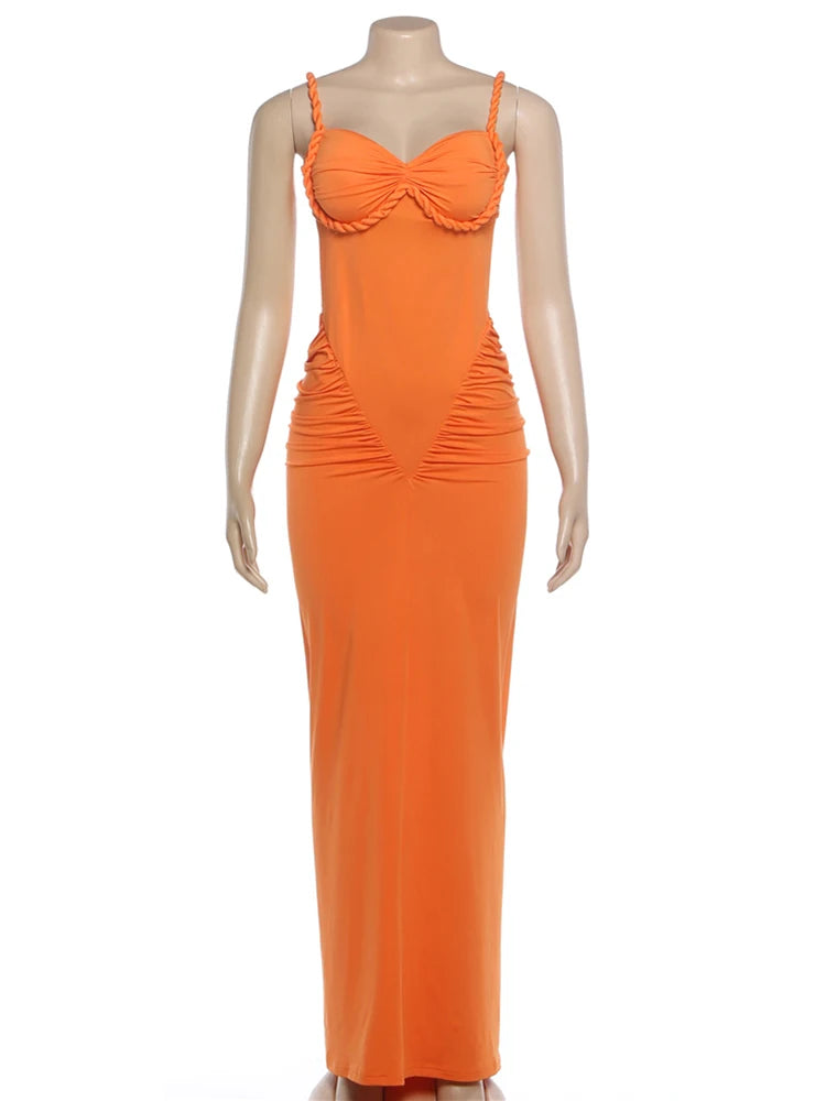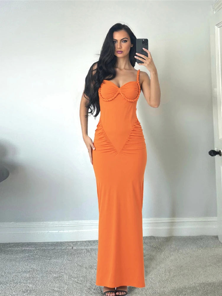 Twist Rope Maxi Dress Women Chic Low-Neck Folds Sleeveless Backless Solid Stretch Skinny Beach Party Fashion Vestidos
