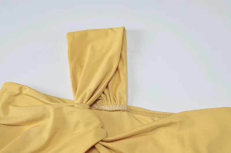 Twisted Hollow One Shoulder Backless Maxi Dress Woman Yellow Elegant Party Dresses for Wedding Guest