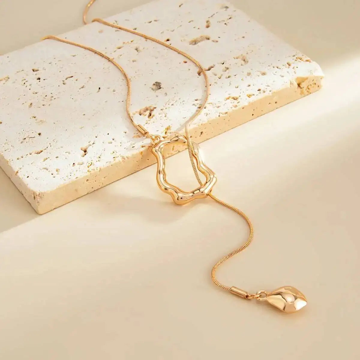 Unique Sexy Long Chain Geometric Pendant Choker Necklace for Women Vintage Adjustable Sweater Cross Chain Jewelry Gift