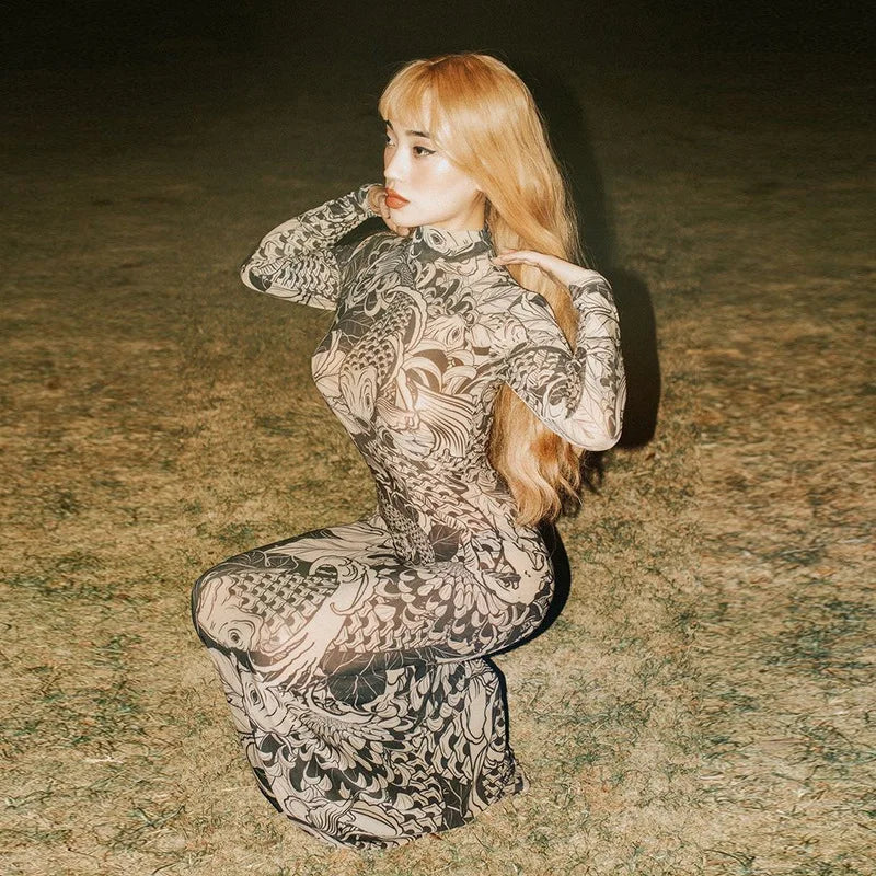 Vintage Printed Mesh Dress See Through Long Sleeve Maxi Dresses for Women Streetwear Y2k Clothing