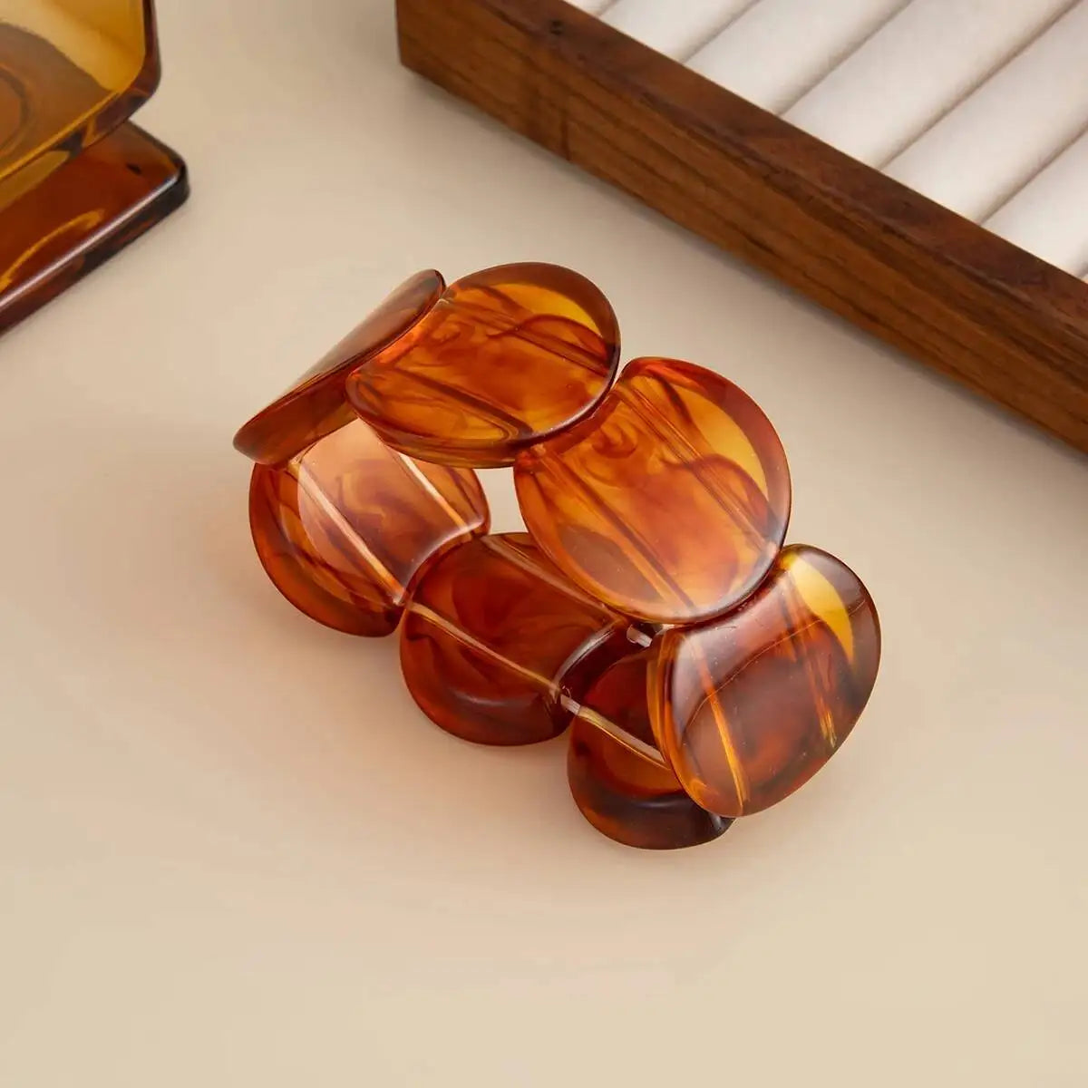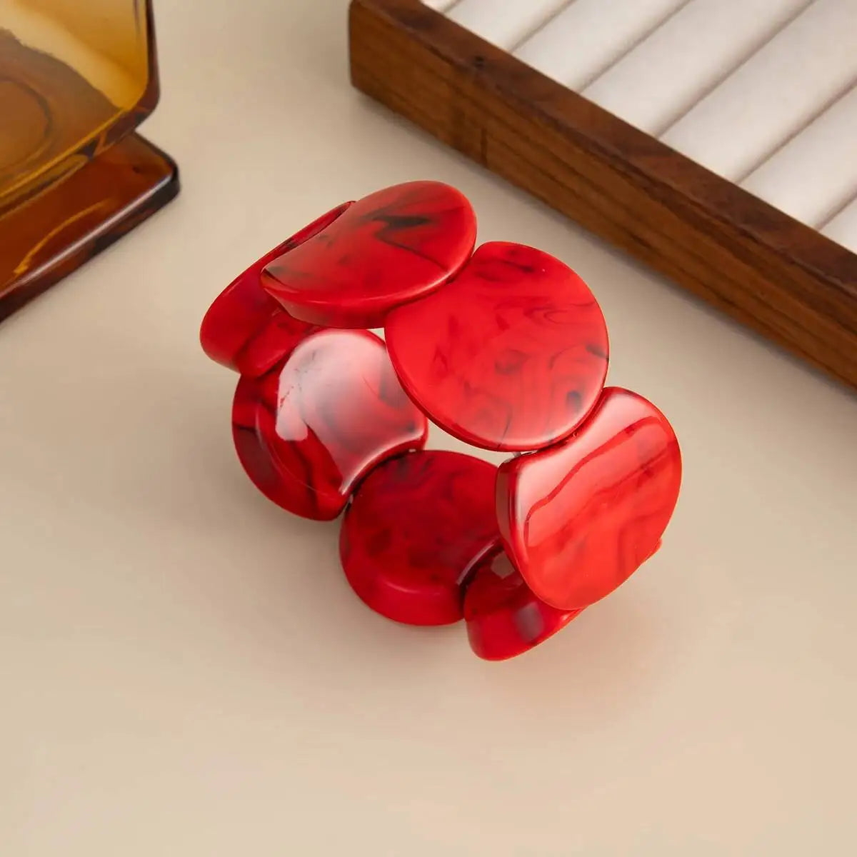 Vintage Wide Resin Acrylic Bracelet Set for Women Exaggerated Stacking Bangle Trendy Red Pink off White Smudge Splicing Jewelry
