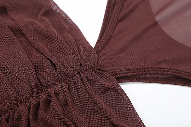 Waistless Long Dress Woman Mesh Patchwork 3d Furry Decoration Slash Neck Backless Street Fashion Ruched Elegant Vestidos
