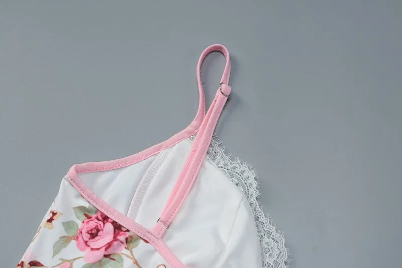 Women Floral Dresses Elegant Summer Vacation Outfits Lace Trim Deep V Neck Sleeveless Backless Long Dress