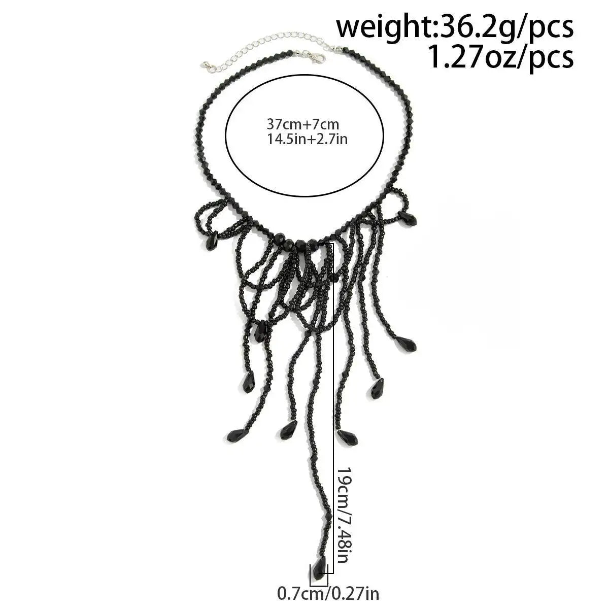 Women's Neo-Gothic Black Red Crystal Beaded Tassel Pendant Necklace Vintage Halloween Party Jewelry Accessory