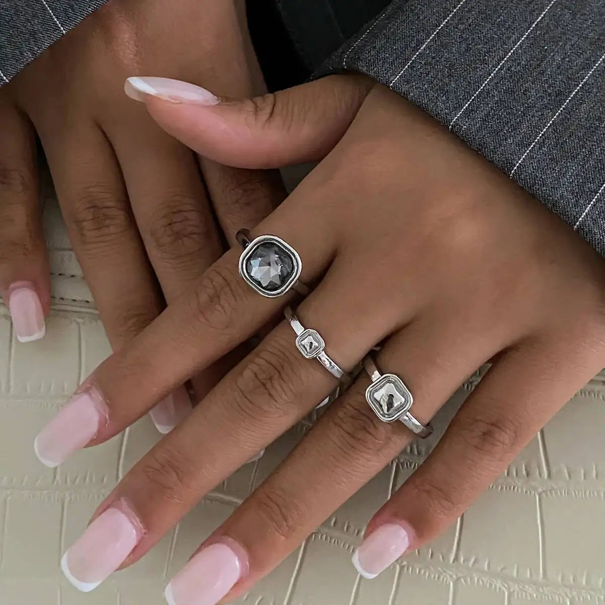 Women's Trendy Minimalist Acrylic Rhinestone Open Rings Geometry Square Adjustable Knuckle Party Jewelry Set