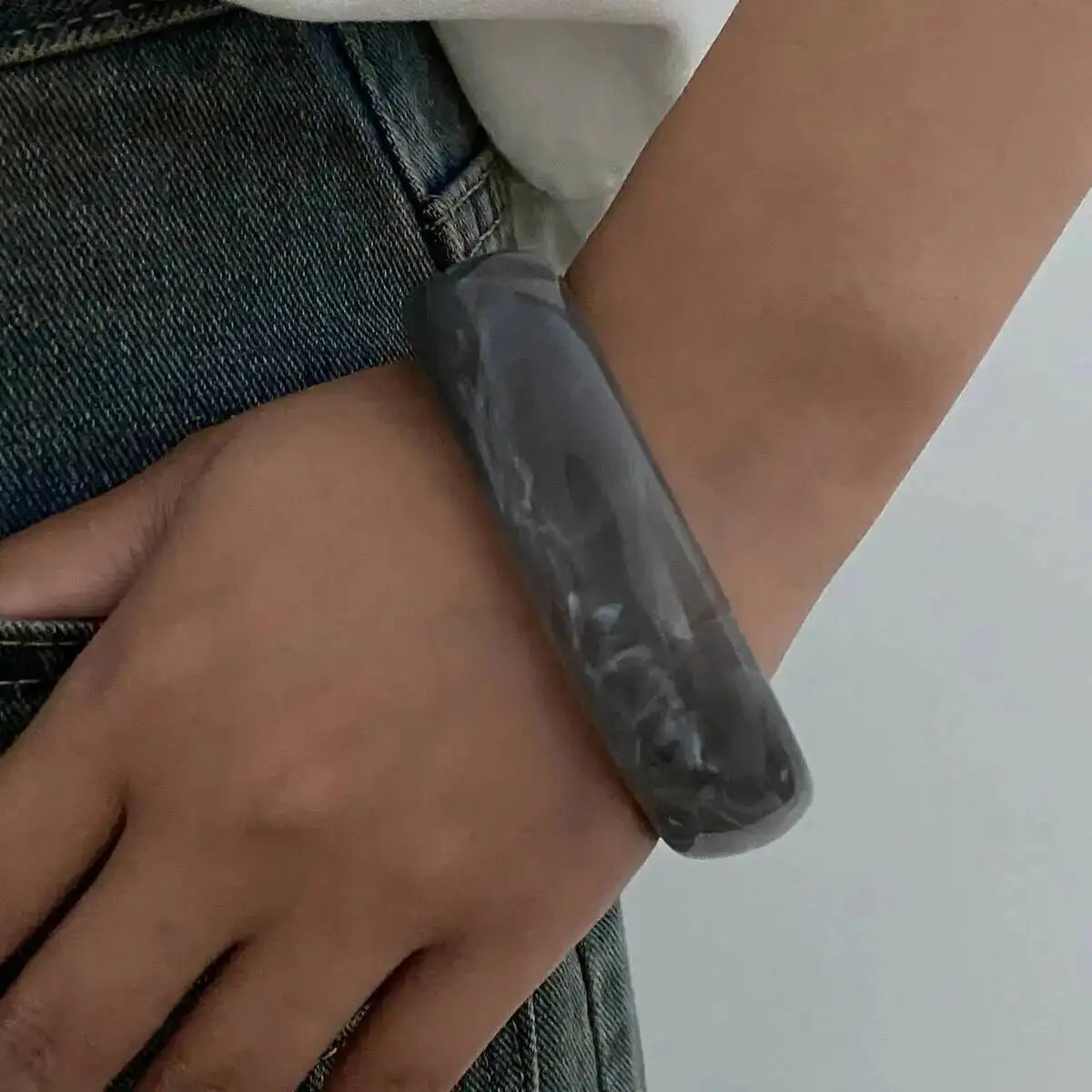 Women's Vintage Punk White Resin Cuff Elastic Bangles Set 4 Styles Boho Wide Geometric Y2K Vintage Jewelry Gift