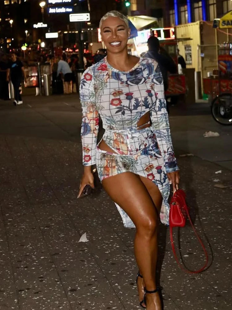 Y2K See Through 2 Piece Set Women Sexy Flowers Lace-Up Hollow Bodysuit+Irregular Skirts Matching Streetwear Outfits