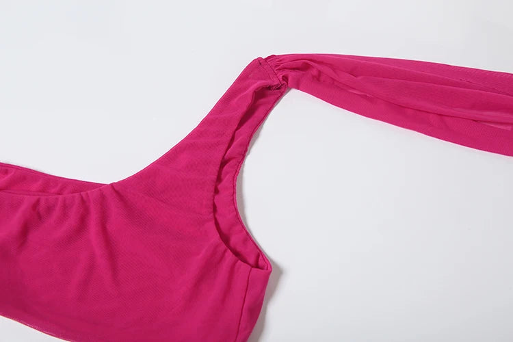 Y2K Sexy 2 Piece Set Women See Through Midnight Irregular Full Sleeve Crop Tops+Ruched Split Skirts Matching Clubwear