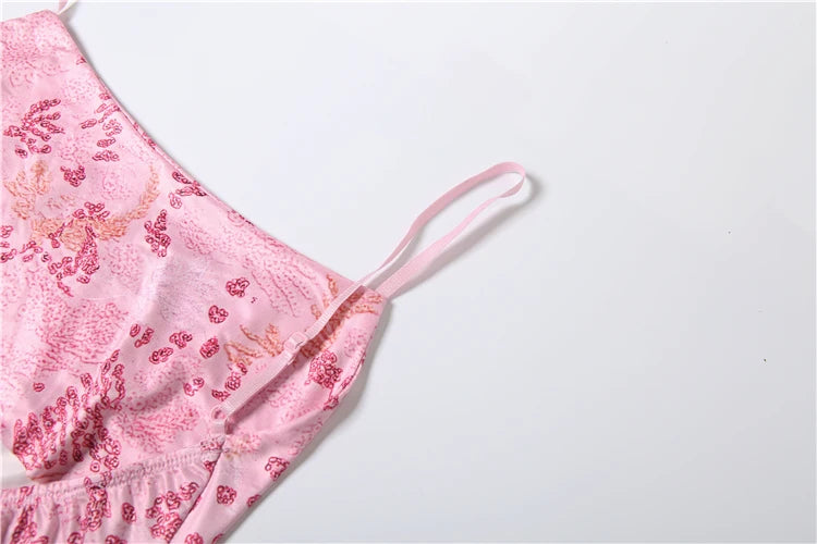 Y2K Sexy Dress Women Floral Print Backless Slit Skinny Elegant Summer Trend Party Banquet Vacation Festival Vestidos