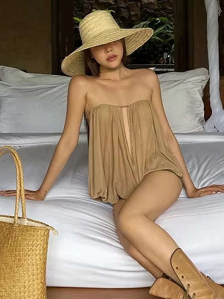 Y2K Split Tube Tops Women Solid Sexy Slim Beach Party Vacation Simple Classic Street Midnight Hottie Clubwear Tees