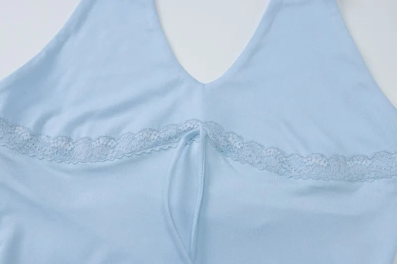 Y2k Summer Co Ord 2 Piece Set Lace Trim Halter Top and Mini Skirt with Shorts Underneath Cute Vacation Outfits