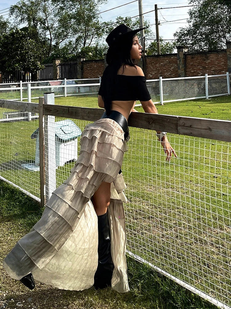 Y2K Tierred Skirts Women Split Patchwork Skinny Hottie Sexy Midnight Music Festival Street Trend Chic Long Bottoms