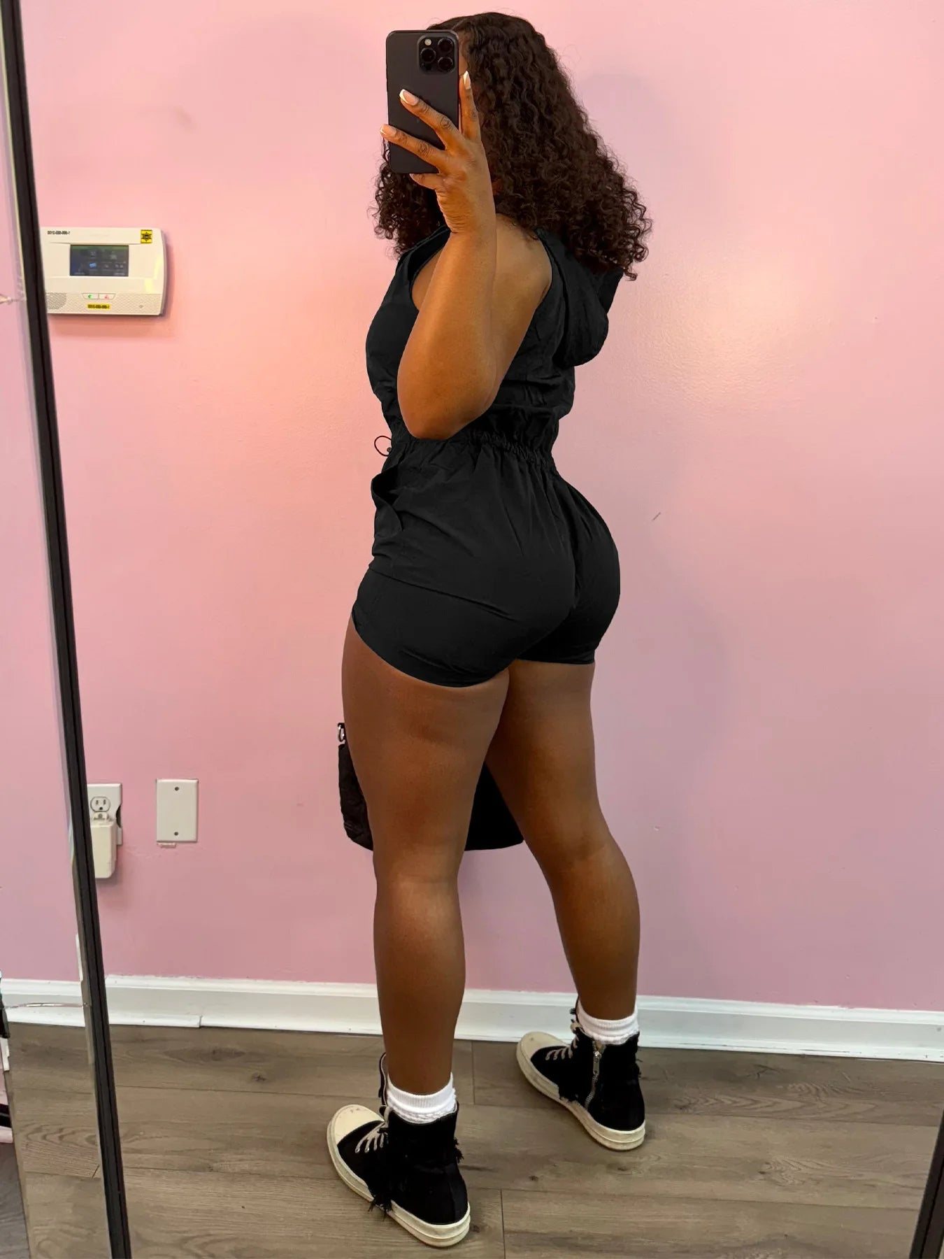 Zip Hooded Playsuit Women Casual Sporty Summer Hipster Sleeveless Stretch Activity Streetwear Shorts Sash Playsuit
