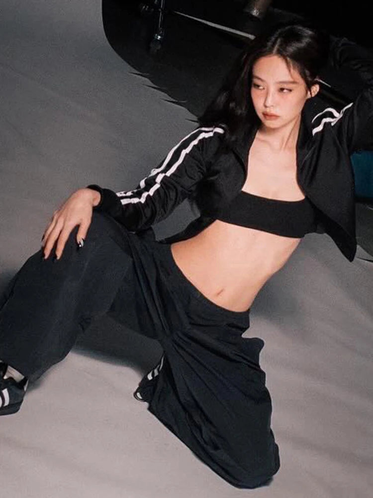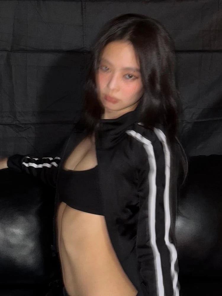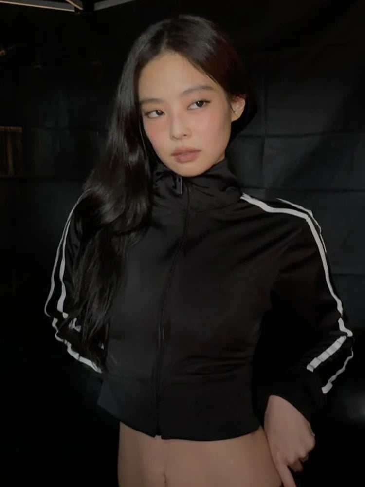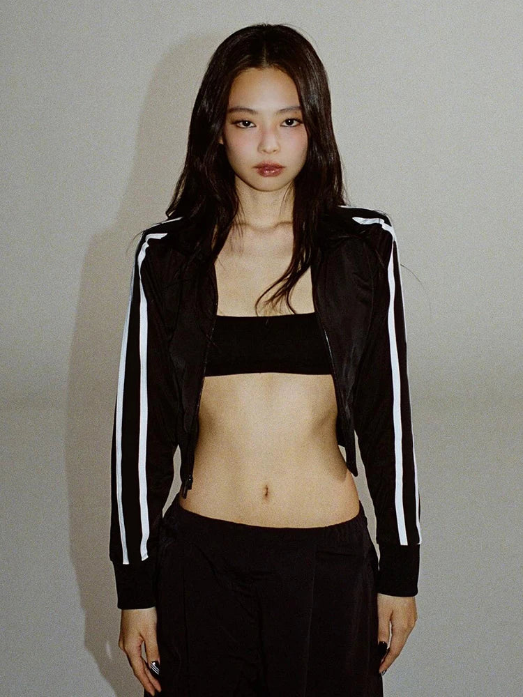 Zip Jacket Women Stripe Stretch Skinny Autumn Trend Sporty Simple Hottie Classic Streetwear Y2K Casual Hipster Coat